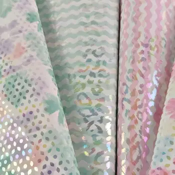 • Waterproof New Holographic LaserPrint PU Leather Fabric Holographic Foil Print Leather for Handbags